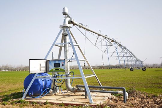 После подключения воды и электричества к центральной опоре, опорные тележки вращают трубопровод вокруг центральной опоры. В движение тележки приводят электродвигатели запитанные от дизельного электрогенератора.